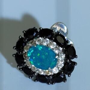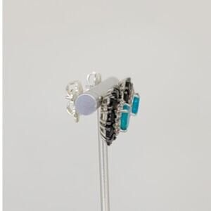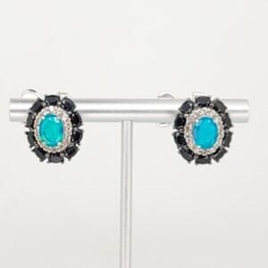 Genuine Untreated Paraiba Blue Opal Black Spinel White Zircon Earrings