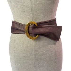 You are looking at a genuine brown leather belt by Victoria Tea. Belt measures 36" long, 2"1 wide. Belt comes with faux tortoise style buckle with soft brown leather and belt is clean with no tears and belt is exactly as pictured. This belt is in good condition and is 100% genuine Victoria Tea Los Angeles.