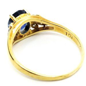 Genuine 1ct Sapphire Stone + Diamond Genuine 18k Yellow Gold Ring US Sz 7.5