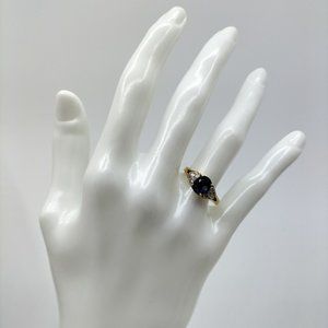 Genuine VTG 1 ct Sapphire Stone + Diamond Genuine 18k Yellow Gold Ring US Sz 7.5
