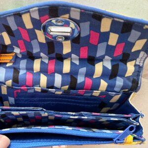 Authentic Vera Bradley POP ART Geometric Your Turn Lock Smartphone Wristlet Wallet SKU #15658-660 Retails for $44.00. For all of your important essentials - cards, cash, ID, even your phone. Silver tone turn-lock closure. Inside gusseted interior, four separate compartments (one designed especially for a smartphone), three card slips, plus zippered coin pocket. Removable wrist strap. Approx 6.5" W x 5" H x 1.5" D. It is in excellent condition. Comes from a smoke free home. All of my purses are from my own private collection. I am not an expert on them. I listed all the info that I have. Thank you!