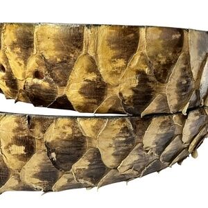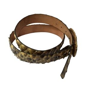 You are looking at a genuine beige/brown snake skin belt in good condition. Belt measures 47" long with 39"3 from the first perforation and 43"2 at its last perforation from buckle, 1"4 wide and belt size is 40. The snake skin on this belt is in good condition with silver tone hardware and looks great.