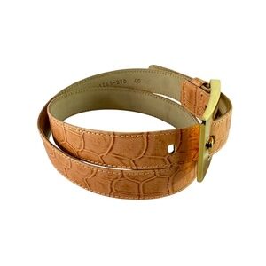 Genuine Vintage ESCADA Logo Salmon Pink Croc Leather Belt Size 30 Made In Italy