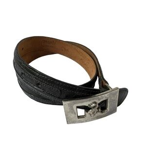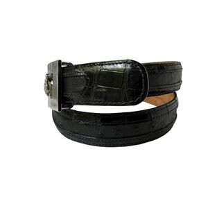You are looking at a genuine Mauri belt with navy blue alligator and grey ostrich skin. This belt measures 35"7 long with 27"2 from first perforation and 31"2 at its perforation from buckle and is 1" wide. The buckle measures 2"2 wide x 1"4 high and it's a great vintage find. 100% genuine Mauri made in Italy and belt was well cared for.