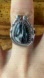 This artistic horseshoe ring is made with 6.00 ctw of natural, earth mined white buffalo stone (also known to some as white turquoise or white buffalo turquoise). The ring is set in solid .925 sterling silver with a black oxidation/patina finish for a more vintage look. The ring in the photos is the actual one you will receive, so please see photos for gemstone quality and measurements. Size 7.