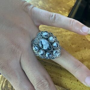 Genuine White Buffalo Sterling Silver Southwestern Ring Size 7