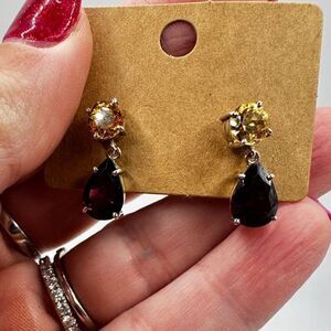 Genuine citrine and garnet dangle stud earrings in sterling silver!