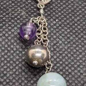 Sterling silver closure and chain, sterling bead, amethyst bead, and then I think it's either a blue calcedony or another similar bead. I also believe I have a card for these as well so I will keep an eye out for them but this is a great way to wear your crystals. Amethyst is so good for healing!
