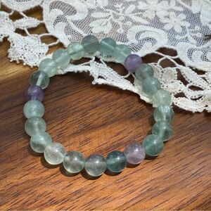 Handmade crystal bracelet with genuine fluorite in greens and purples