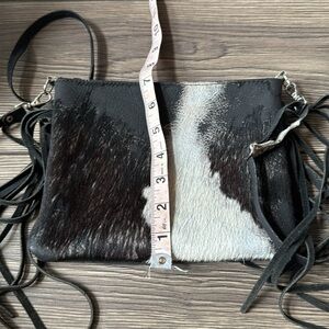 Genuine fur cowhide fringe crossbody bag black and white