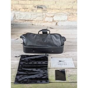 Rare vintage M.Par of Scotland professional golfer’s weekender duffel bag. Crafted from premium grain leather with embossed logo detailing and a zippered base compartment for gear or shoes. Includes the original glove pouch, drawstring bag, and M.Par booklet. A luxury collectible and functional carry-on.