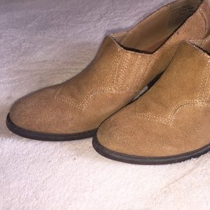 Western style booties, listed size 36.5, 548 brand from Saks Fifth Avenue. I can not rave about these enough. There is no way I would sell them if they fit! I bought them from another Poshmark seller the beginning of February 2018. I am a 5.5 and these are very big on me. I would say these are 6.5-7 in Women. Gorgeous medium camel color. Solid, quality and very stylish! A few dinge spots on the heel and toes. Almost broken in.