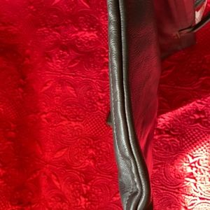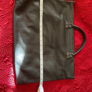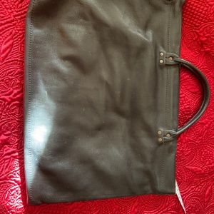 Thin, black leather, zippered, pull apart portfolio. Non lined. Great basic bag.