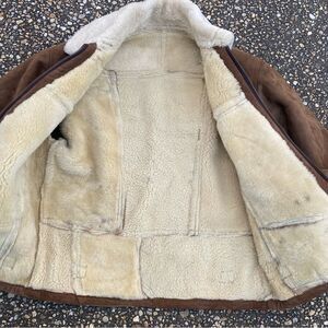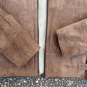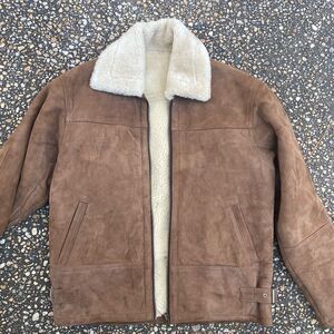 Absolutely gorgeous mens suede and genuine shearling Sherpa lining in beautiful condition. No tags or markings but the quality is excellent. Probably best for a size medium or small.