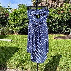 Genuine y2k 2b Bebe Blue Polka Dot Sleeveless Smocked Key Hole Dress Size M