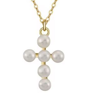 Genuine Cultured Pearl Cross in 14k over Sterling Silver Pendant Necklace