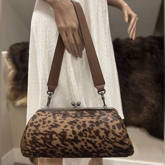 Genuine Hair On Calf-hide Handmade Tulip" Shaped Kisslock Baguette Bag