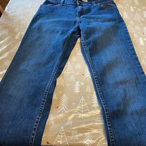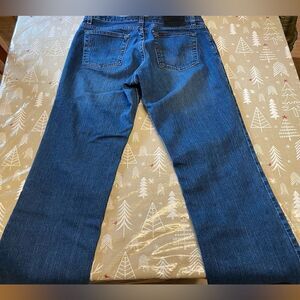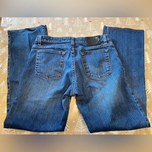 This is a pair of cute Genuine Harley Davidson Jeans, size 10R, wide leg. They are in excellent used condition, and they are a darker Jean color. See photos for waist measurement, and the inseam is approximately 30.