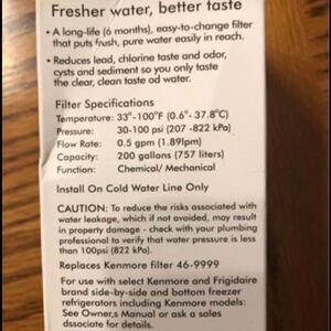 Water filter 9999 fits select Kenmore and Kenmore Elite French-door and bottom-freezer refrigerators.