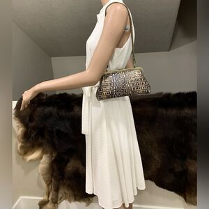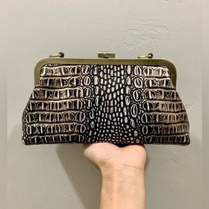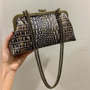 Genuine Leather Croc-Embossed Texture Push-lock Clutch/Shoulder Bag/Crossbody