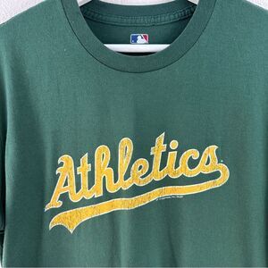 Genuine Merchandise Oakland A’s T-shirt size L. Distressed look logo. Excellent preowned condition. See pics for care tags and approximate measurements.