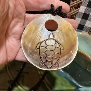 Genuine Mother of Pearl Pendant w/ Etched Sea Turtle