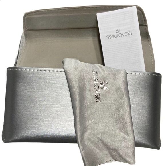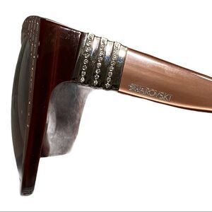 Swarovski's signature take on butterfly frames - crystal adornment on top corners of frame - rows of crystals on silver plate detail on temple -carved geometic pattern on tips of plastic arms-Classic and ladylike style - celebrity style eyewear