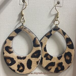 Genuine leather cheetah pattern 3 1/2 inch earrings