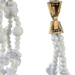 This is vintage 60, 70s awesome all white 3 strands of plastic peals with a mix of white flowers so light weight great condition