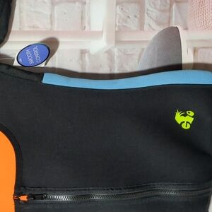 Wetsuit Top, the size is extra large but it runs like a medium. the material is very smooth. it is just a bit stretchy, just a bit. pretty and soft.