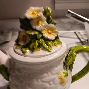 Geo. Z. Lefton Mid Century Rustic Yellow Daisy Basket Teapot. #3855. Adorable.