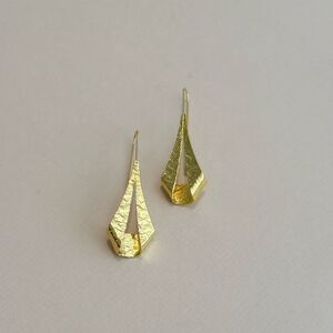 Textured geo twist dangle drop earrings in gold tone hardware