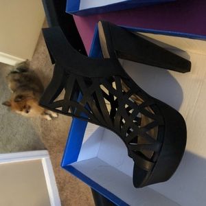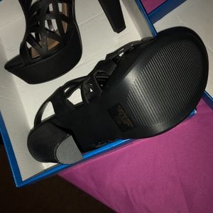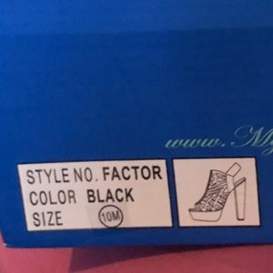 Never worn great for a night out to a club, on a date, or a cocktail waitress. The shoes suprisingly are comfortable and the velcro strap in the back adds to the comfort. Size 10 Medium width.