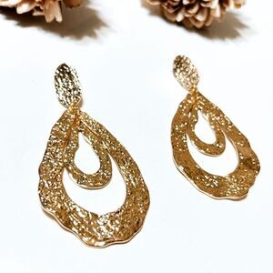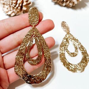 Zara geo textured dangle earrings in gold tone