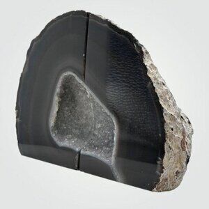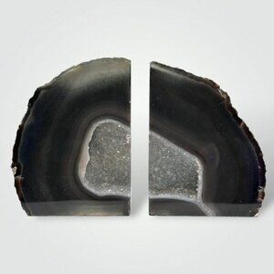 Unique agate crystal bookends with a stunning geode center. Add a touch of natural beauty to your bookshelf or office space with these natural Agate bookends from Brazil. These hand-carved, solid agate gemstone bookends are unique, authentic, and designed to make an impression.