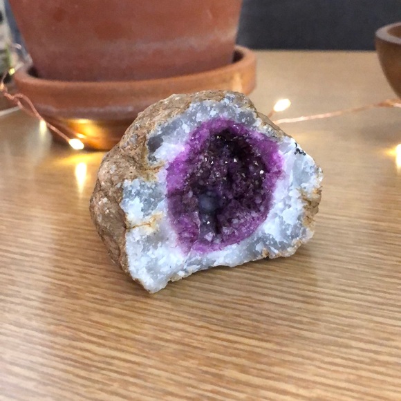 Natural geode, purchased at a state park. Catches the light beautifully.