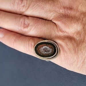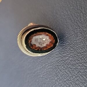 Geode Ring sterling silver. Black,Red, Clear Crystals. Size 6. Can be Resized.