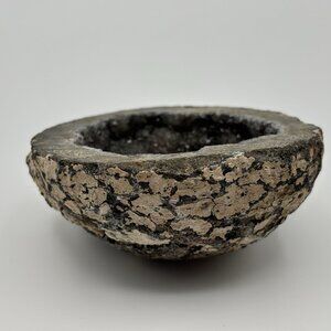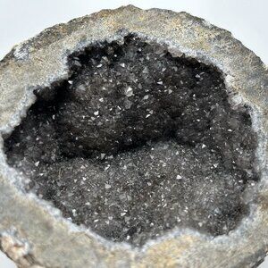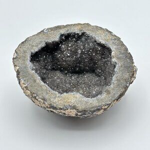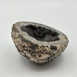 Geode Smoky Quartz Calcite Crystal Agate Mineral Specimen Coconut Mexico Half 3"