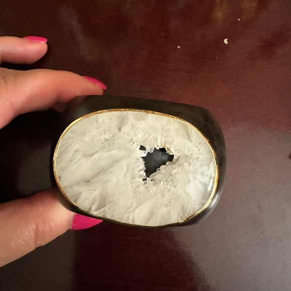 Such a fun piece! Wood bracelet with spectacular piece of druzy on top.