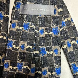 Geoffrey Beene 100% Silk Geometric Black and Blue Tie