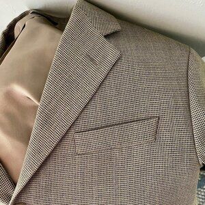 Geoffrey Beene 3 Button Sports Coat Jacket Blazer Size 42 Long with Approximate measurements laying flat: Pit to Pit 23", Length (Bottom of collar to hem) 33", Sleeve Length (Shoulder to outside cuff hem) 23.5". 55% Polyester, 45% Wool, Lining 100% Acetate.