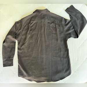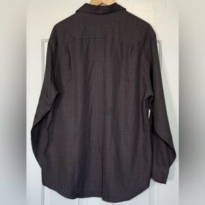 Classic and versatile Geoffrey Beene long sleeve button-up shirt in a subtle brown micro-plaid pattern. Made from a luxurious modal/polyester blend that offers a soft drape, breathable comfort, and wrinkle-resistant wear. Perfect for office, business casual, or evening outings.