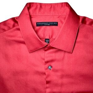 Geoffrey Beene Fitted Wrinkle Free Sateen Dress Shirt in Red Men’s 16 1/2/32-33