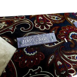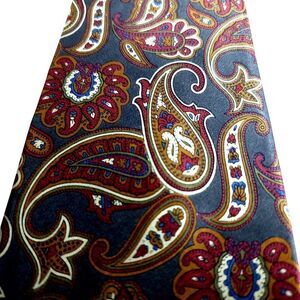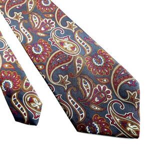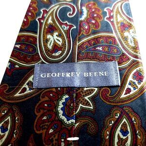 Geoffrey Beene Gray Red Orange Paisley Print Wide Silk Tie