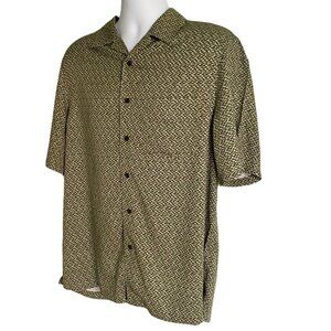 This Geoffrey Beene green short sleeve button down shirt is made from 100% viscose and sized for men's large. It's in excellent condition, offering comfort and style.
