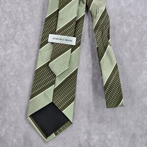 Geoffrey Beene Green White Stripe Geometric 100% Silk Men's Neck Tie