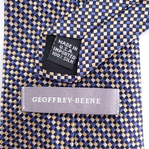 Geoffrey Beene Men 100% Silk Tie Check Blue Yellow 58x4 - NWOT - made in USA