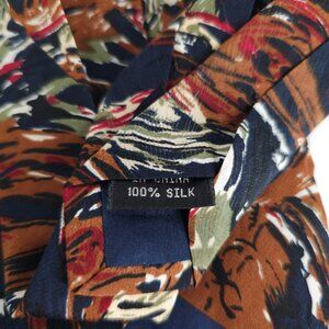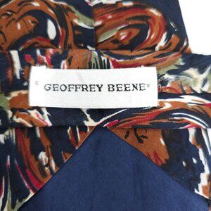 Geoffrey Beene Men Necktie 100% Silk Geometric Blue Brown Green 57x3.5 - NWOT