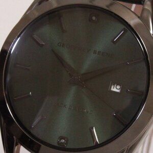 Geoffrey Beene Men's Dress Watch Diamond At 12 Emerald Green Leather 42mm