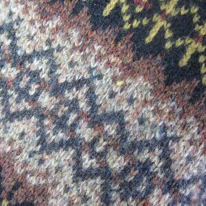 Geoffrey Beene Mens Large Brown Black Lambswool Fair Isle Sweater Crew Neck